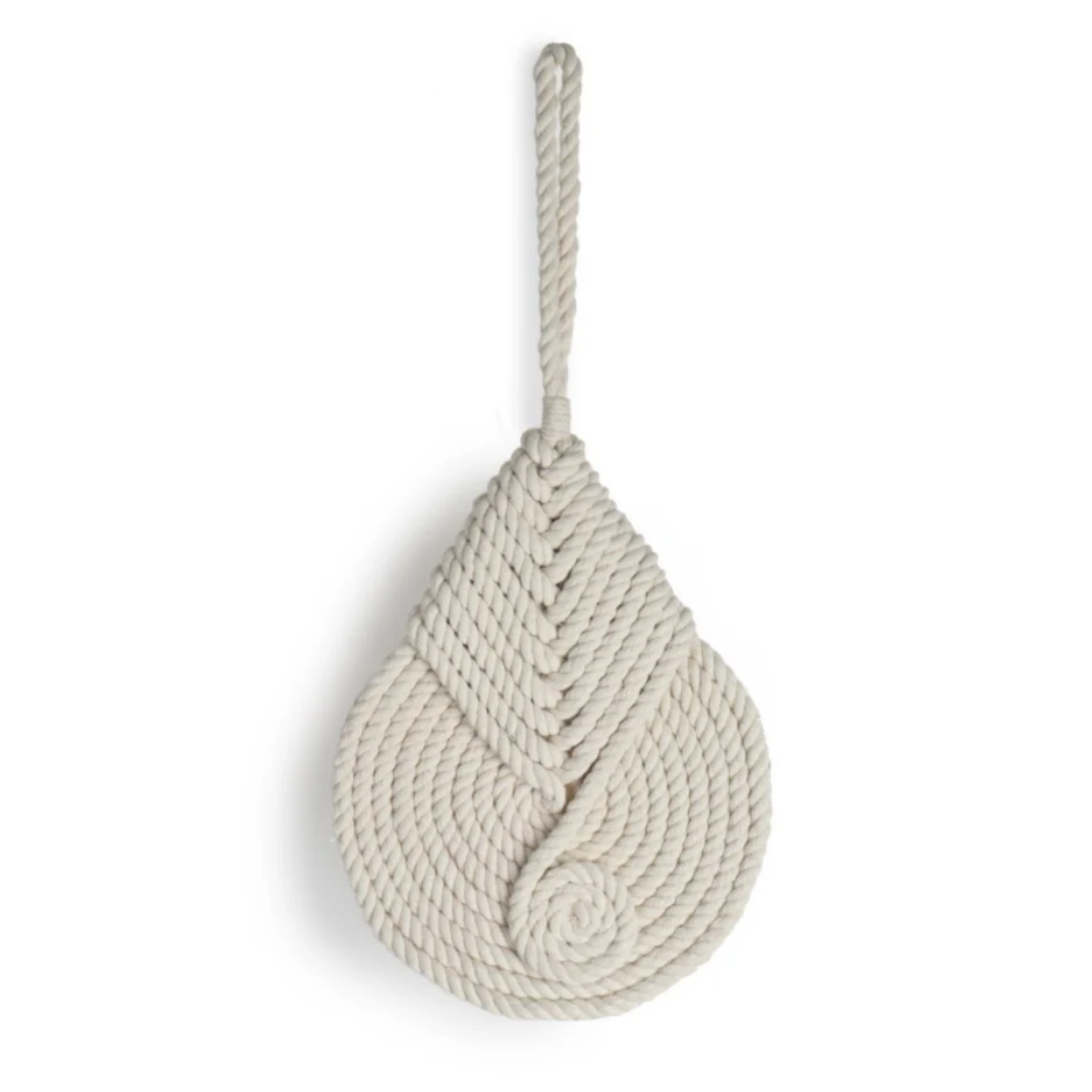 This handcrafted wall hanging is made from 100% cotton cord and features a symmetrical macrame design with a fringe finish. Its neutral color and balanced pattern make it suitable for various interiors, from bohemian to modern.