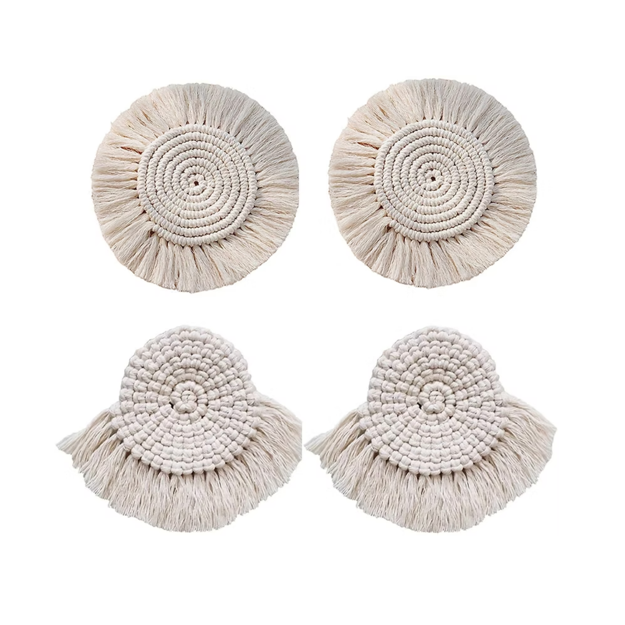 These coasters are handcrafted using traditional macramé knotting techniques, creating a unique, bohemian-inspired design. Made from natural cotton cord, they protect surfaces from moisture and heat while adding texture and style to your table setting. Lightweight and durable, these coasters are easy to clean and perfect for everyday use or special occasions.